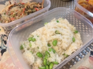 ・ 青梗菜ちシイタケ卵スープ    ・ ホタテと枝豆の中華おこわ
