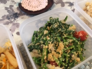 定番の副菜2品。切り干し大根と、ほうれん草の胡麻和え、しっかりレシピを覚えてくださいね。
